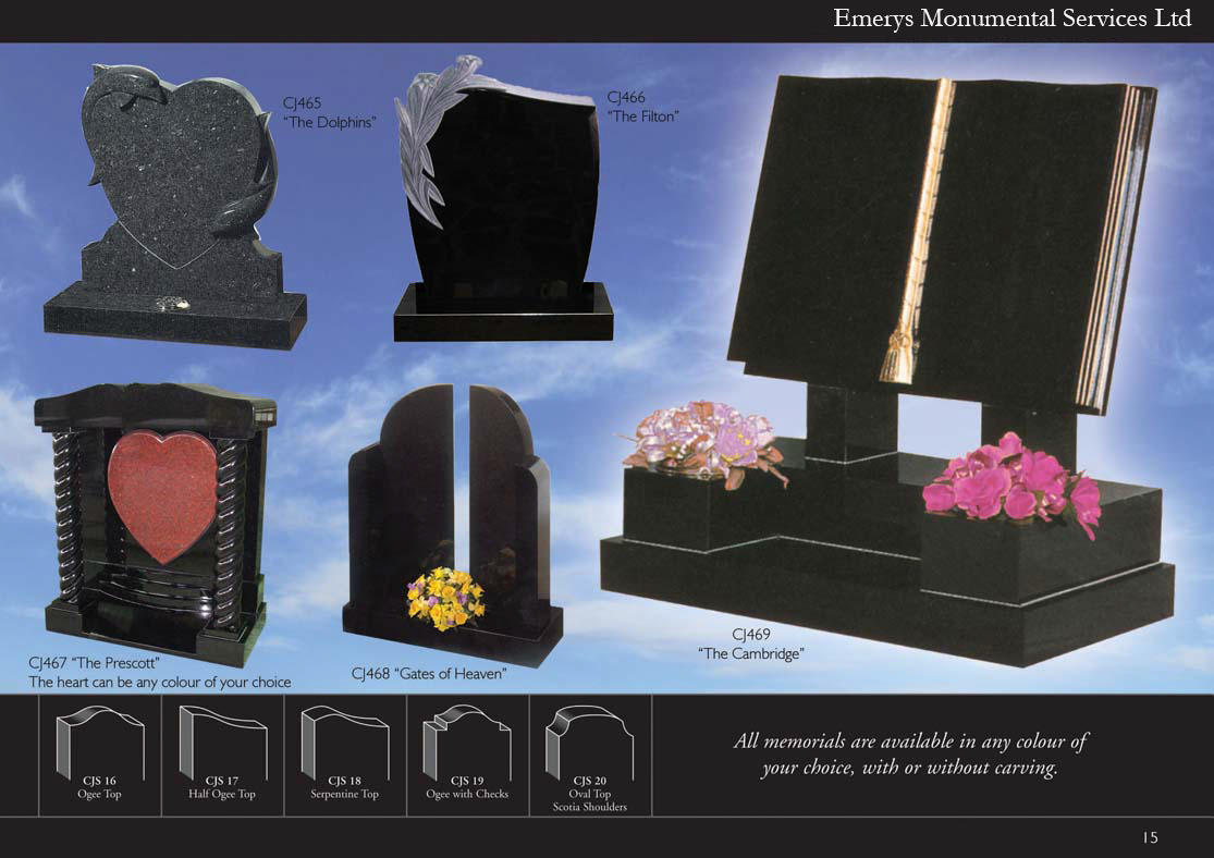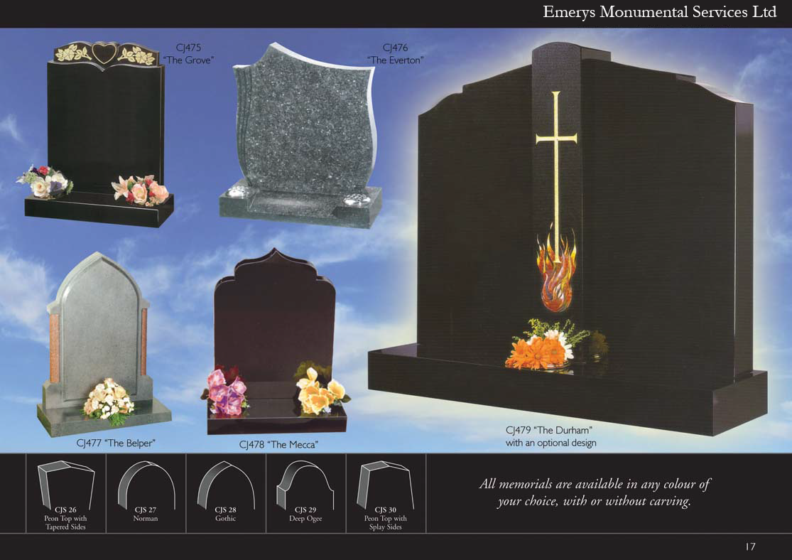 Emerys Monumental Services LtdWe offer a wide range of high quality granite and natural stone memorials with a full bespoke personal design service. Edition 6 of our memorial catalogue. A wider range with many more options to choose from.